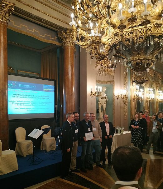 Οι μεταπτυχιακοί φοιτητές του Εργαστηρίου Ολοκληρωμένων Κυκλωμάτων Καριοφύλλης Πατσίδης, Δημήτρης Κωνσταντίνου και ο Επικ. Καθηγητής Γ. Δημητρακόπουλος έλαβαν το βραβείο καλύτερης ερευνητικής εργασίας στο συνέδριο Design Automation and Test in Europe, 2019 στη θεματική περιοχή ελέγχου της ορθής λειτουργίας των ολοκληρωμένων κυκλωμάτων. H εργασία με τίτλο Error-Shielded Register Renaming Subsystem for a Dynamically Scheduled Out-of-Order Core” προέκυψε σε συνεργασία με ερευνητές της Intel, Xάιφα, Ισραηλ και του Πανεπιστημίου Κύπρου.
