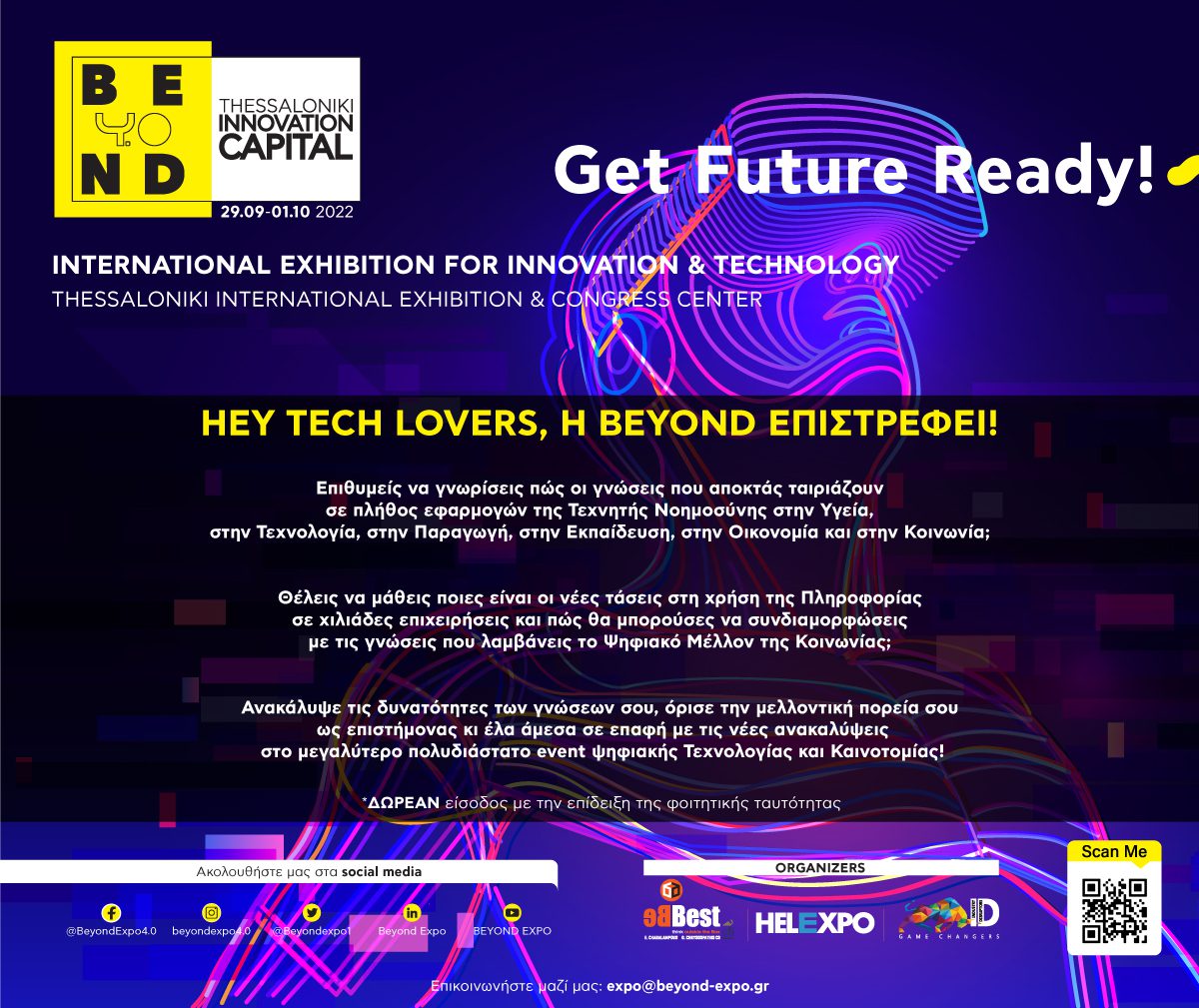 Το Δημοκρίτειο Πανεπιστήμιο Θράκης συμμετέχει για δεύτερη χρονιά στην έκθεση τεχνολογίας BEYOND που θα πραγματοποιηθεί το χρονικό διάστημα 29.9-01.10.2022 στο εκθεσιακό κέντρο της ΔΕΘ HELEXPO στη Θεσσαλονίκη.