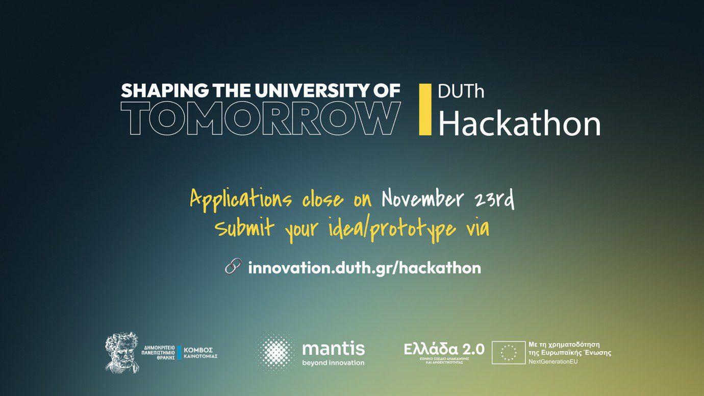 Περισσότερες πληροφορίες για το πρόγραμμα βρίσκονται στη σελίδα: https://innovation.duth.gr/hackathon/.